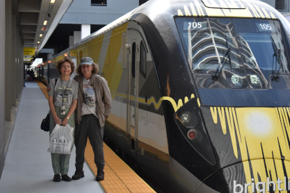 The Brightline emblems are everywhere in the station. The stations and trains are very clean, spacious and bright with comfortable seats. USB ports for charging electronics are between each seat. The coaches themselves feature large windows and a washroom at one end. Our ride was smooth and quiet and we enjoyed the round trip. We walked back to the Metrorail station to ride to Miami International Airport.