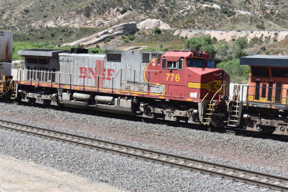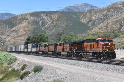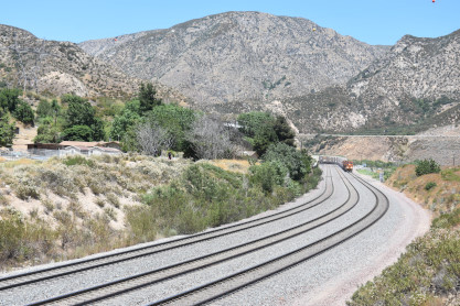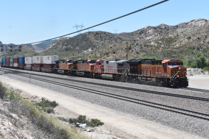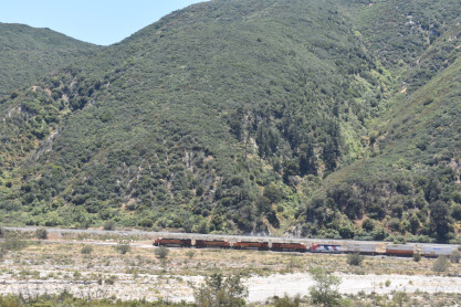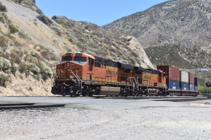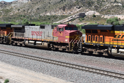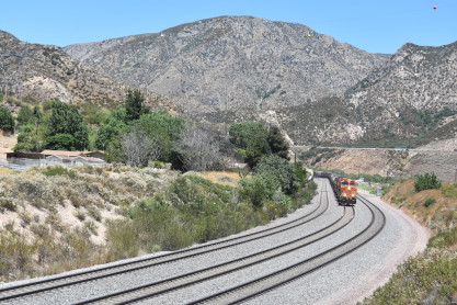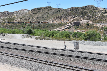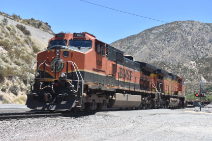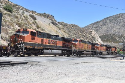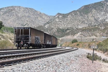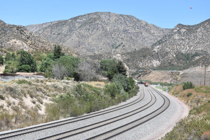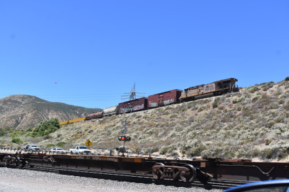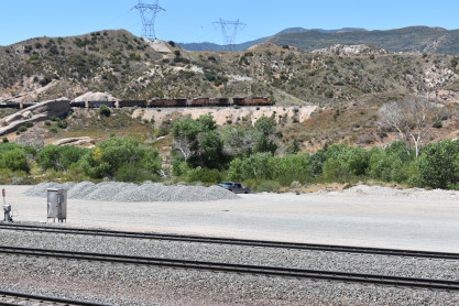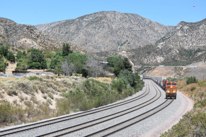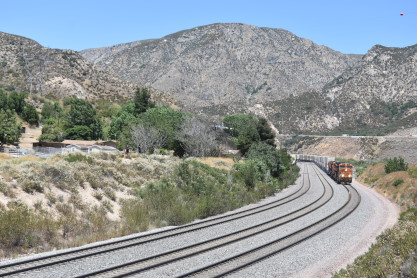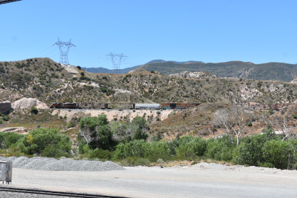 Our Railfanning AdventureI drove us out to Cajon Pass via CA Highway 55, CA Highway 91 and Interstate 215 to Cajon Boulevard, which we took up to the pass. We parked on the old highway and did not have long to wait for a train.