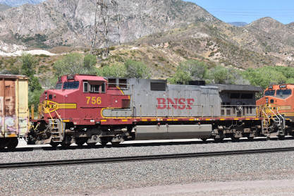 BNSF 3811 West at Keenbrook died on the hours of law and would have to be re-crewed. It was over 103 degrees along Cajon Boulevard further south so we headed to the San Bernardino station to wait for the train there.