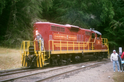 California Western Railroad HistoryThe railroad was originally built by the Fort Bragg Redwood Company as the Fort Bragg Railroad in 1885 to carry coast redwood logs from the dense forests at Glenela (Glen Blair) to a newly built lumber mill located 6.6 miles to the west at coastal Fort Bragg, California. Fort Bragg Redwood Company was incorporated into the new Union Lumber Company in 1904; the railroad ownership always rested with the parent lumber company until 1969. On July 1, 1905 the railroad was renamed the California Western Railroad & Navigation Company. In 1904 passenger service was added, and on December 11, 1911, the route was completed to its total length of 40 miles roughly following the Noyo River, to interchange connection with the Northwestern Pacific Railroad in the inland town of Willits, California.