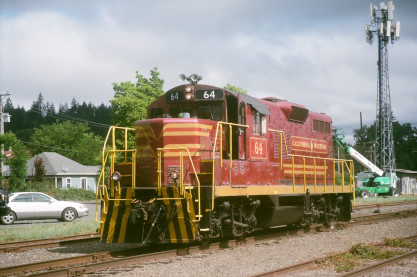 California Western GP9E 64, ex. Kyle 1750, exx. Southern Pacific 3311, exxx. Southern Pacific 3444, nee Southern Pacific 5607, built by Electro-Motive Division in 1955.