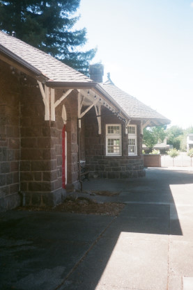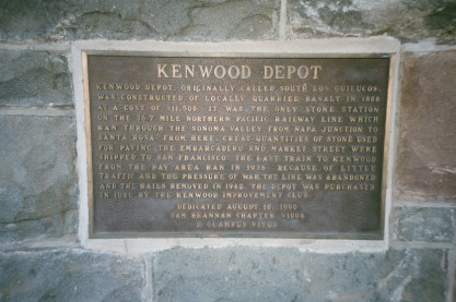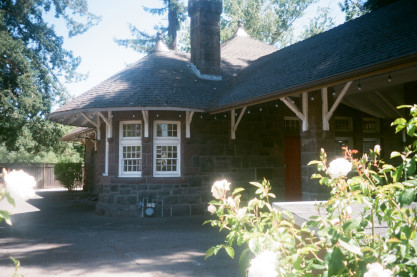 Southern Pacific Kenwood station, originally South Los Guilucos, built with locally-quarried basalt in 1888. It was the only stone station on the 36.7 miles Northern Pacific Railway line which ran through the Sonoma Valley from Napa Junction to Santa Rosa.