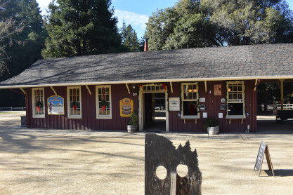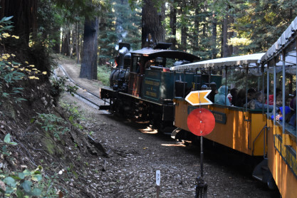 Elizabeth and I arose at the Best Western and after a good night's sleep, checked the Internet then packed and checked out. I drove us to the Black Bear Diner where I enjoyed French Toast and bacon while Elizabeth enjoyed cinnamon French Toast. From here I drove us to Felton via CA Highways 183, 1 and 9, the latter a twisting and turning road that took us to Roaring Camp. We parked and walked in, picked up our boarding pass then visited the general store and bought Arcadia Publishing' "Images of Rail: Roaring Camp Railroads" by Beniam Kifle and Nathan Goodman. I then waited for a train to come into the station.