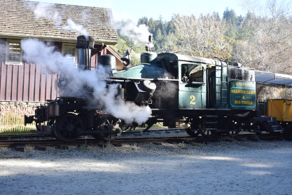 Roaring Camp and Big Trees Heisler 2 "Tuolumne" reversing to its trainset for the 10:45 steam train.