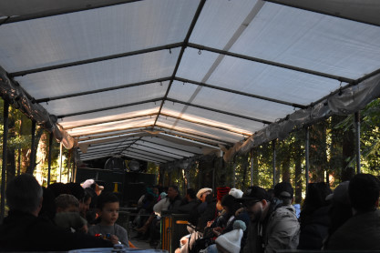 We boarded the train, taking the first fully open car. On the first big curve after departure, this was the scene.