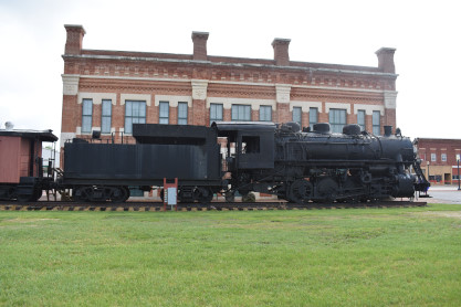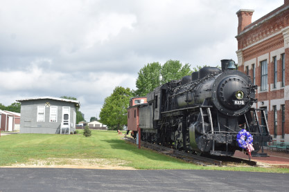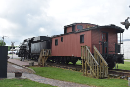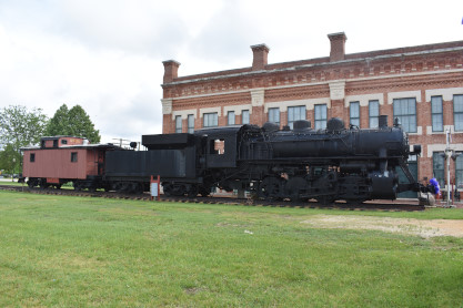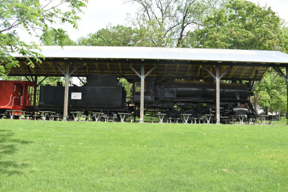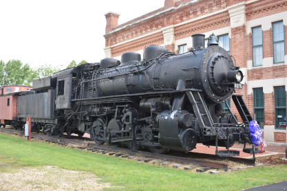 Grand Trunk Western 0-8-0 8376 built by Baldwin in 1929. The engine is one of sixteen 0-8-0s the Grand Trunk Western sold for scrap in 1960 to the Northwestern Steel & Wire (NS&W) Company in Sterling, Ilinois. Rather than cut them up, however, NS&W chose to use them as switch engines in their yard, and some survived in service into the early 1980s. 8376 was renumbered 76 under NS&W ownership and operated in daily service until the mill owner's death in 1980. After retirement in 1981, it was donated to the City of Amboy and placed on display at the Amboy Depot Museum along with Norfolk & Western caboose 518125, built in the N&W shops in Roanoke, Virginia in 1915.