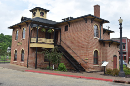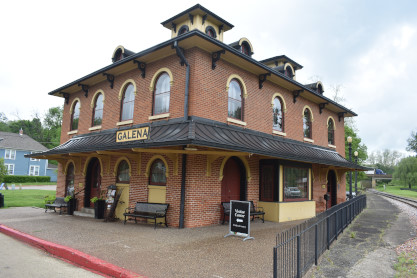 Illinois Central Galena station built in 1857. We crossed the Mississippi River into Dubuque and wanted to visit the station, part of a Mississippi River museum but a freight train was blocking the grade crossing that we needed to use. So we decided to head on to Manchester.