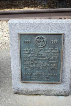 This plaque is about the founding of the union that would become the Order of Railway Conductors and Brakeman.