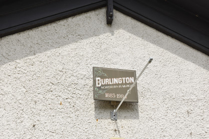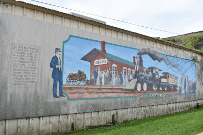 This sign show Burlington Northern ownership. The bulding is now used by the Sterling Chamber of Commerce.
