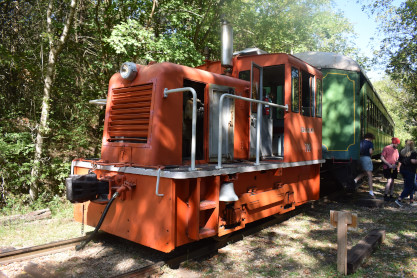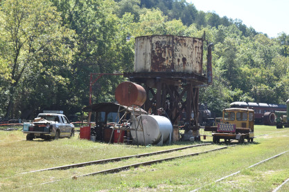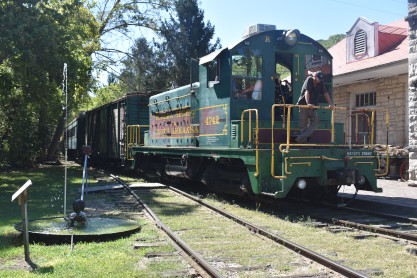The train is pulled by an EMD SW1 4742 built in 1942 as Chicago & Eastern Illinois 98. It later went to the Missouri Pacific, and then to Granite Mountain Quarries of Sweet Home, Arkansas, before coming to the ES&NA. Two steam locomotives can be found on site: 226, a 2-8-2 built in 1927 by Baldwin for the Dierks Lumber & Coal Company and an un-numbered German 0-4-0T mounted on a pedestal as advertising.