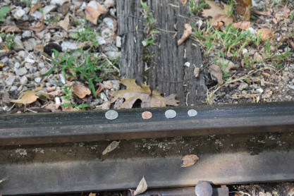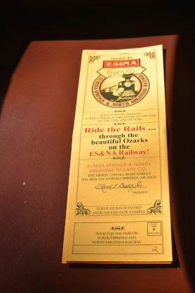 Elizabeth and I put coins on the tracks to let the train flatten them, as did many others. After the train reversed over them, all coins were retrieved and we reboarded for the return trip to Eureka Springs.