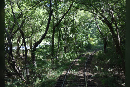 View of the tracks behind our train.