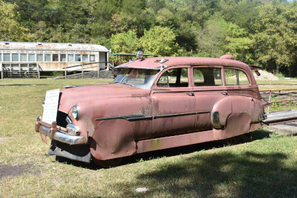 Track Inspection Car, a converted 1951 Chevrolet wagon, is among the exhibits at the Eureka Springs & North Arkansas Railway.