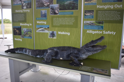 An alligator on display at the Visitor Center. We paid for Tram Tour and then we walked the Bobcat Trail.