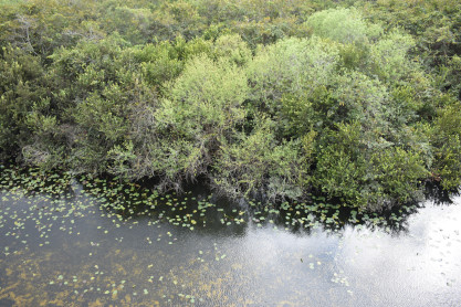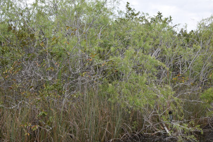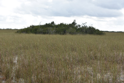 There are islands in the everglades with different kinds of Cypress trees on them. Cypress trees thrive in flooded conditions and forests often grow in the shape of a dome, with taller trees in the center of the dome or in a linear strand where trees growth follows the flow of the water. A long-lived deciduous wetland species, cypress can live as long as 600 years.