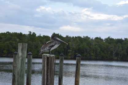 A Brown Pelican standing on a mooring. We drove to Port of the Island Resort where we checked in for the night and ate dinner in their Angler's Cove restaurant, then relaxed before getting a good night's sleep.