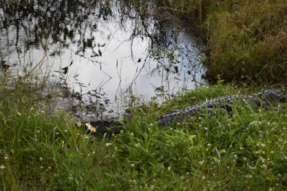 This American Alligator is out in the open and really enjoy the rays of the sun on his cold-blooded skin.