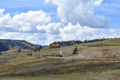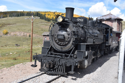 Cumbres and Toltec 4-6-0 168, orginally Denver and Rio Grande Western 168, built by Baldwin in 1883. It was pulled the first passenger train from Denver to Ogden and was displayed in Antlers Park in Colorado Springs from 1938 until 2015. It was restored to operation in October 2019 and is used primarily for special events and charters hosted by the Friends of the Cumbres and Toltec Scenic Railroad.