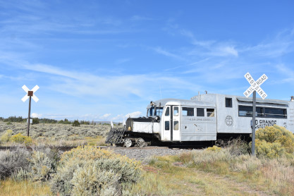 The old snowplow out in the trees about milepost 327.
