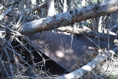 TNT was stored in this bunker which would blow upwards. There was a pipe for nitroglycerin storage which was used in building the railroad through the mountains.