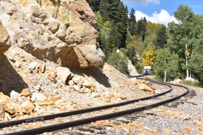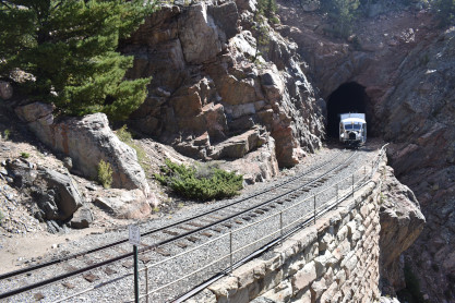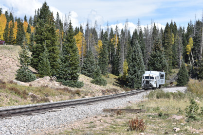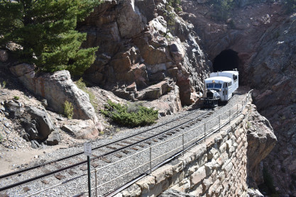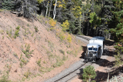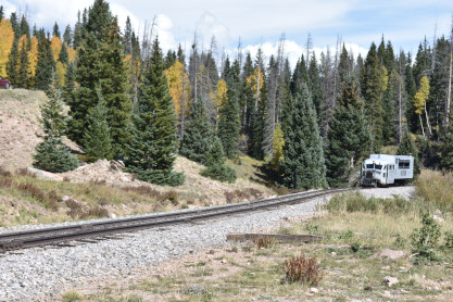 Galloping Goose 5 at the second grade crossing at the top of Whiplash Curve.
