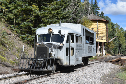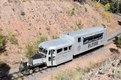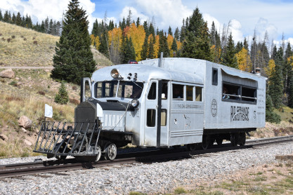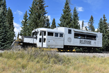 Even though originally built from Buicks and Pierce Arrows, the word "dignified" never seems to have been included in their description, but they were serviceable and definitely fit their purpose. Traveling through the countryside with a horn that could easily be mistaken for the call of a real goose, they were said to have "waddled" down the uneven, poorly maintained tracks of the cash-strapped Rio Grande Southern.