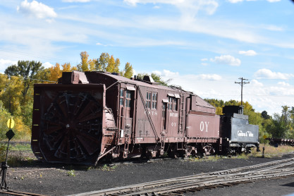 Cumbres and Toltec rotary snow plow OY built by Cooke Locomotive Works in 1923 at a cost of $38,336.26 for the Denver & Rio Grande Western Railroad. Galloping Goose Five came to a stop in front of the Chama station with Elizabeth and I detraining. It had been an excellent day of riding this unique vehicle and all the runbys and posed pictures were excellently scouted out and executed. I was very impressed by all the locations used and many of them were brand new to me and outstanding. Elizabeth thoroughly enjoyed her day of riding the Goose on the Cumbres and Toltec Scenic Railroad. I bought two T-shirts for Elizabeth and I and some others for gifts. We returned to the Branding Iron Motel for the night.