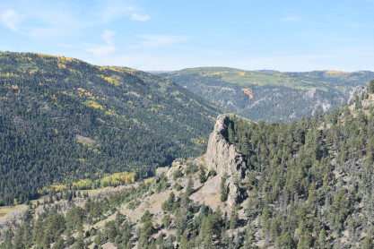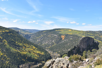 A look down into the Rio de Los Pinos Gorge which is 600 feet down and 800 feet across.