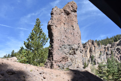 Elizabeth and I woke up with the alarm at 6:30 and after our partial internet duties, we stopped at Speedway for breakfast items as no restaurants were open at that time. We then drove to the Chama station where I picked up our Goose tickets and we boarded the bus. I enjoyed my powdered donuts and cinnamon roll with lemonade and Elizabeth had hot chocolate and coffee cake. The bus left a few minutes late and we had a quiet bus driver who drove us to Antonito.
