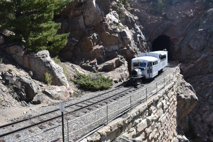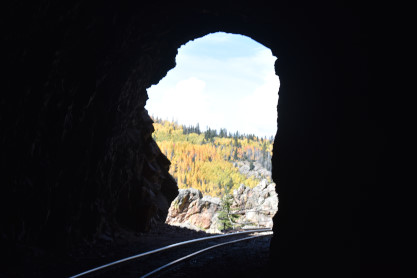 One more view before Galloping Goose 5 stopped at the east portal of Rock Tunnel. We were surprised to be able to walk through the 320 foot tunnel. A warning was given not to touch the railings on the other side as they were not stable. Everyone made it through the tunnel.