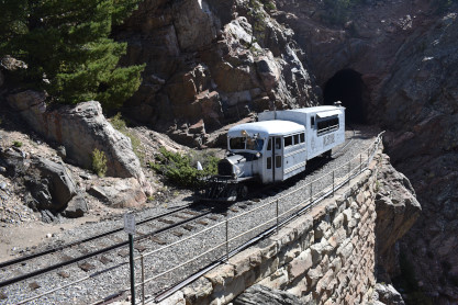 Beautiful fall colors are seen in this view. We stopped at Cascade Trestle, 137 above the Cascade Creek.