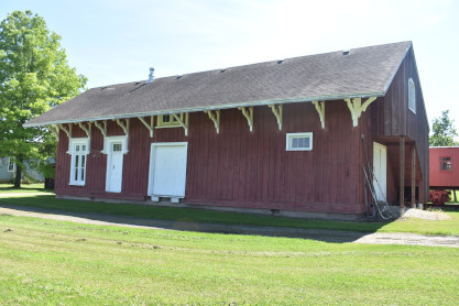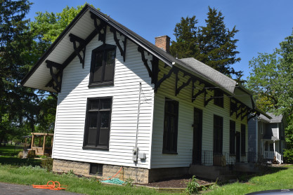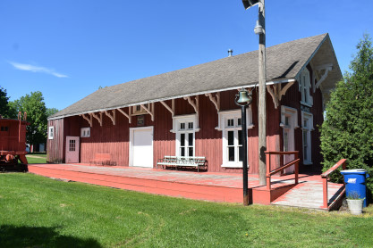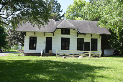 Chicago, Burlington and Quincy Sandwich station which had been cut in half to make these two houses. Our next stop would have been Plano but we learnt from the Railroad Station Historical Society listing for Carroll County that it had been relocated to Lyon Farms and Village in Yorkville. We drove in and asked a gentlemen if we could take pictures of the station here and he responded with "just drive to it!" so we did just that.