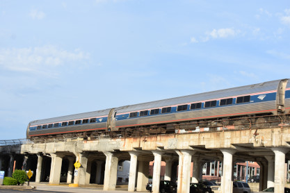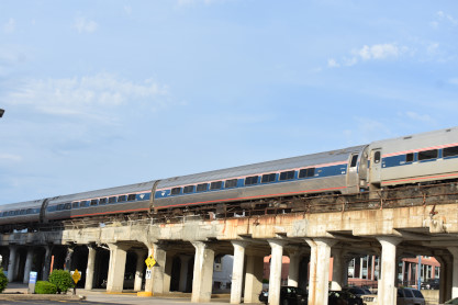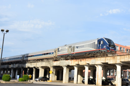 Amtrak Illinois Zephyr 383 on the bridge in Aurora.