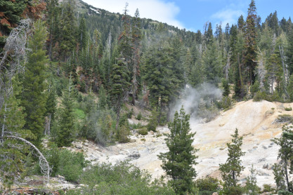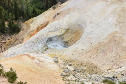 The source of heat for the volcanism in the Lassen area is subduction of the Gorda Plate diving below the North American Plate off the Northern California coast. The area surrounding Lassen Peak is still active with boiling mud pots, fumaroles and hot springs.