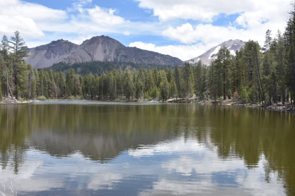 Lake Almanor. The town of Chester shut down the main highway for a parade so we took a detour on 1st Avenue to Watson Road then back to CA Highway 36 which meant no Collins Pine Museum or a steam engine, but the museum was not open today anyway. From here we took CA Highway 36/89 to CA 89 to Lassen National Park where I paid for a new American the Beautiful Pass senior pass so we could use it at various National Parks in the country. We then entered the park.