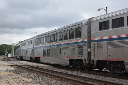 The Southwest Chief train 3 arrived into Mendota, did its station work and left for Galesburg and points west. Elizabeth and I then drove over to Cindy's on 34 restaurant where I had a steak and she had clam chowder and grilled chicken breast. Both our meals came with a dessert so I had ice cream and she had tapioca pudding. I worked on the Elizabeth story and went for a walk later before we called it a night.