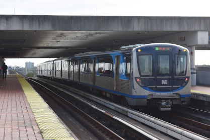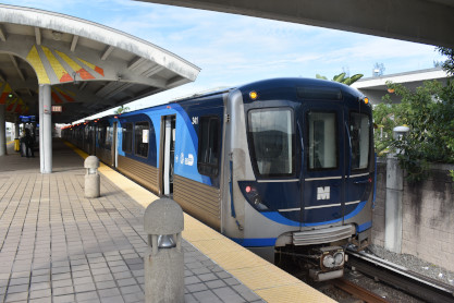 Rolling stockMetrorail currently uses 136 heavy-rail cars built by the Hitachi Rail Italy, the first of which started running in December 2017. They were constructed in a custom rail-car building facility in Medley, Florida. The cars are semi-permanently attached in married pairs, and joined up to form 4-car trains, which is the normal train length. Included amenities are free Wi-Fi, interior bicycle racks, improved announcement systems, digital signs and high-efficiency air conditioning units.