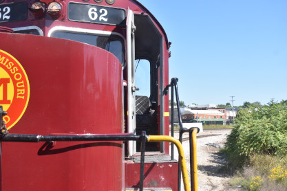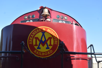 The Arkansas and Missouri emblem on the engine in front of the "Explorer".