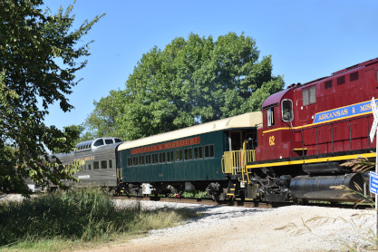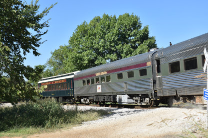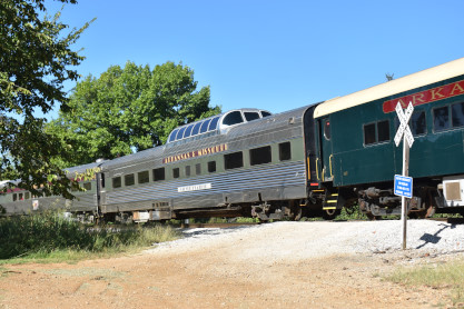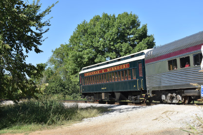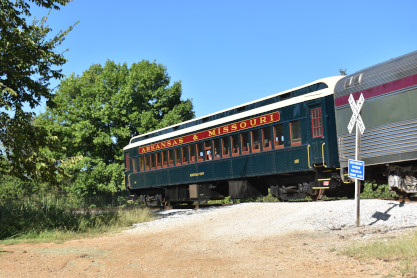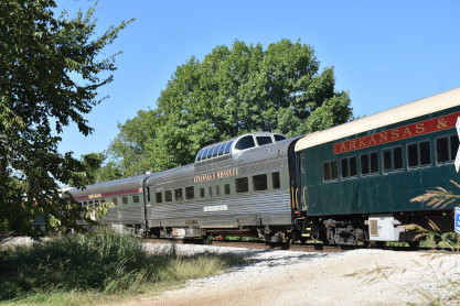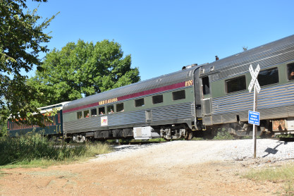 Elizabeth and I awoke on our last morning in Springdale and went downstairs for the hotel's complimentary breakfast. We returned and checked e-mail and the Internet before checking out and driving to the Arkansas and Missouri Railroad station at 8:20. I chatted with John Goodman until I saw good friend Bart Jennings who showed me his new book. Everyone then boarded the same two cars as Friday ("Explorer" and dome "Silver Feather") and I took the same seat with Elizabeth sitting across from me.