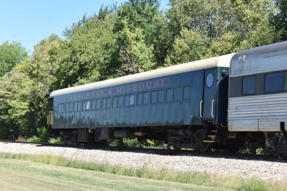 The engine cut off to run around the train. I had brought my laptop with me and started writing the Shop Tour story. At South Monett, we stopped for a photo runby.