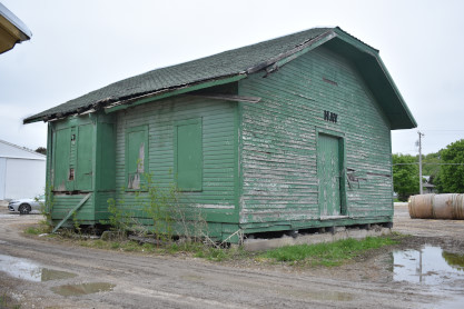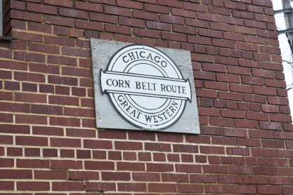 The Chicago Great Western Railway Corn Belt Route emblem on the building. Next we walked over to the passenger station.