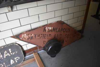 A sign of the Minneapolis Northfield and Southern Railroad.