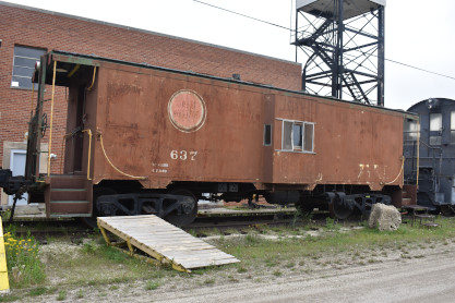 Chicago Great Western Railway bay window caboose 637 which had been numbered 10536 at some point.