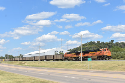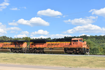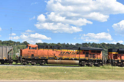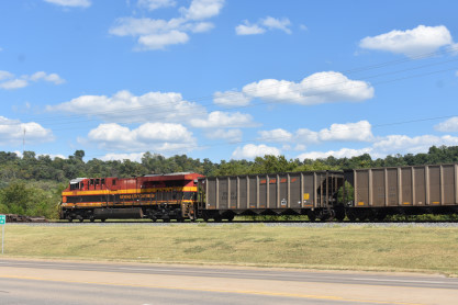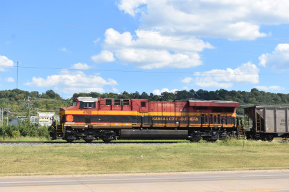 Kansas City Southern 4766 north with BNSF DPUs 6040 and 6788 in Stilwell. We returned to David's house and he showed us some of his slide programs from the Autumn Leaf shows in Centralia, Washington. After that it was time for us to go so we said goodbye to David and Rachael. Elizabeth then drove us to Arby's for dinner before we drove to James and Rebekah's house for a final night here.