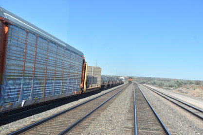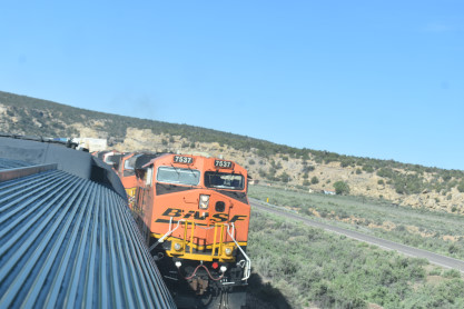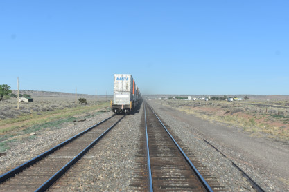 Three BNSF freights were run by west of Gallup. Now one of my favorite parts of the trip, passing all of the red mesas of New Mexico.