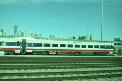 I crossed this mat so many times I had to take a picture of it. After packing up our room and everyone putting their luggage in the lower level of the dome car, Elizabeth and I decided to ride in the dome for the final miles into Chicago. Carl Jensen came by before Elizabeth arrived and thanked me for coming. It had been a fantastic trip in these three private cars to Chicago. The train arrived at Chicago Union Station 40 minutes late and it was time to say our goodbyes to everyone. Elizabeth and I would like to thank the entire crew of the private cars for all their hard work and dedication to the passengers, in my case ensuring I had enough to eat. The chef and servers were all excellent and really looked after all the passengers. The great staff made for a fantastic private car trip. Thank you also to Carl Jensen and his son Chuck for making this possible.
