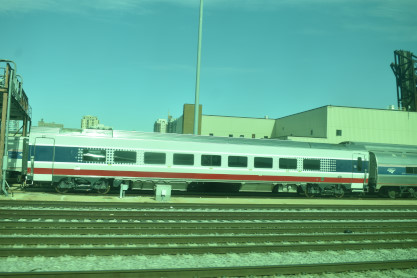 Our next trip would be aboard private cars on the Southwest Chief to Chicago. Carl Jensen invited us to ride to Chicago because there was open space on the cars that had come out from New York and Chicago for the NRHS convention. We jumped at the opportunity to ride not just one, but three private cars, two of which were new to us. On the morning of the trip, which was the day after the convention ended, I did our laundry and we both packed. I worked on the Southern California Railway Museum story during the day while Elizabeth organized herself and prepared for being away. At 5:00 PM Greg and Marty Smith arrived and drove us to Fullerton, dropping us off at Track 3 on the south side and we waited for the rest of our passengers to join us. Shortly they arrived and good conversations were had until the train arrived.
