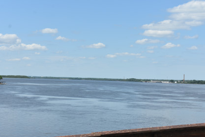 Two views of our crossing of the Mississippi River from the north side of the train.