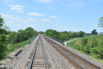 Santa Fe caboose 999235 on display. The train then reversed 1.5 miles to the old Fort Madison station then crossed over to mainline 2. We took this route all the way to Cameron. We were both in the dome for this part of the trip and Elizabeth and a few others got onto the Virtual Railfan camera and watched our train pass through Fort Madison.