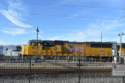 Union Pacific SD59MX 9917, originally UP SD60M 2476 and 6322 built by Electro-Motive Division in 1992; and 9926, originally UP 6290 built by Electro-Motive Division in 1991, departed Santa Clara, following Caltrain 131 up the peninsula.